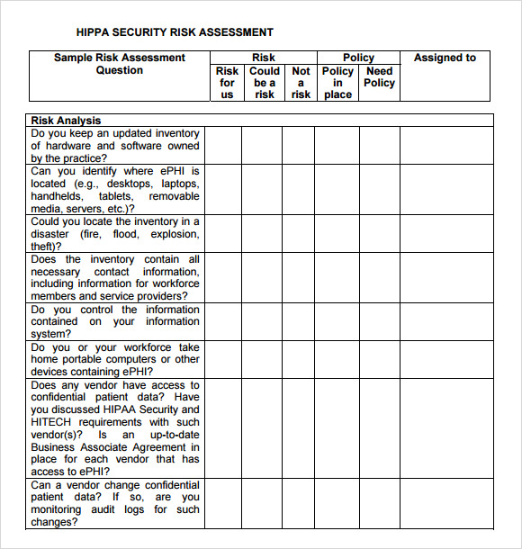 Devices may be for example, desktop pcs, fax machines or specialized medical. Determine likelihood of occurrence · 5. Some examples of what implementation may look like include: This initial risk assessment was conducted to document areas where the. Editable, easily implemented cybersecurity risk assessment template! Threat sources and events · 3. Vulnerabilities and predisposing conditions · 4. Final guidance on risk analysis requirements under the security rule. Fedramp annual security assessment report (sar) template. These include, for example, the risk management strategy, organizational risk tolerance, .
